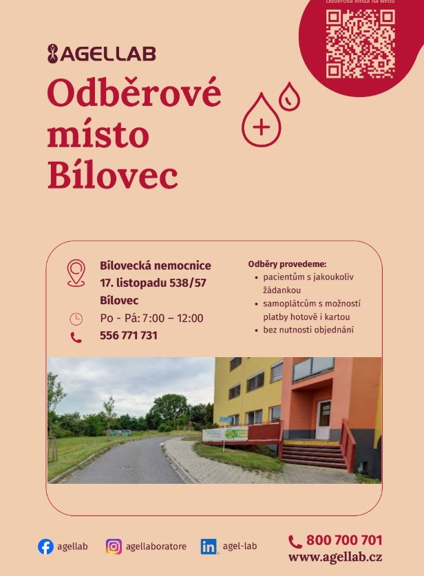 jsme otevřeli nové odběrové místo v Bílovecké nemocnici, a.s., kde vás rádi přijmeme s jakoukoliv žádankou.