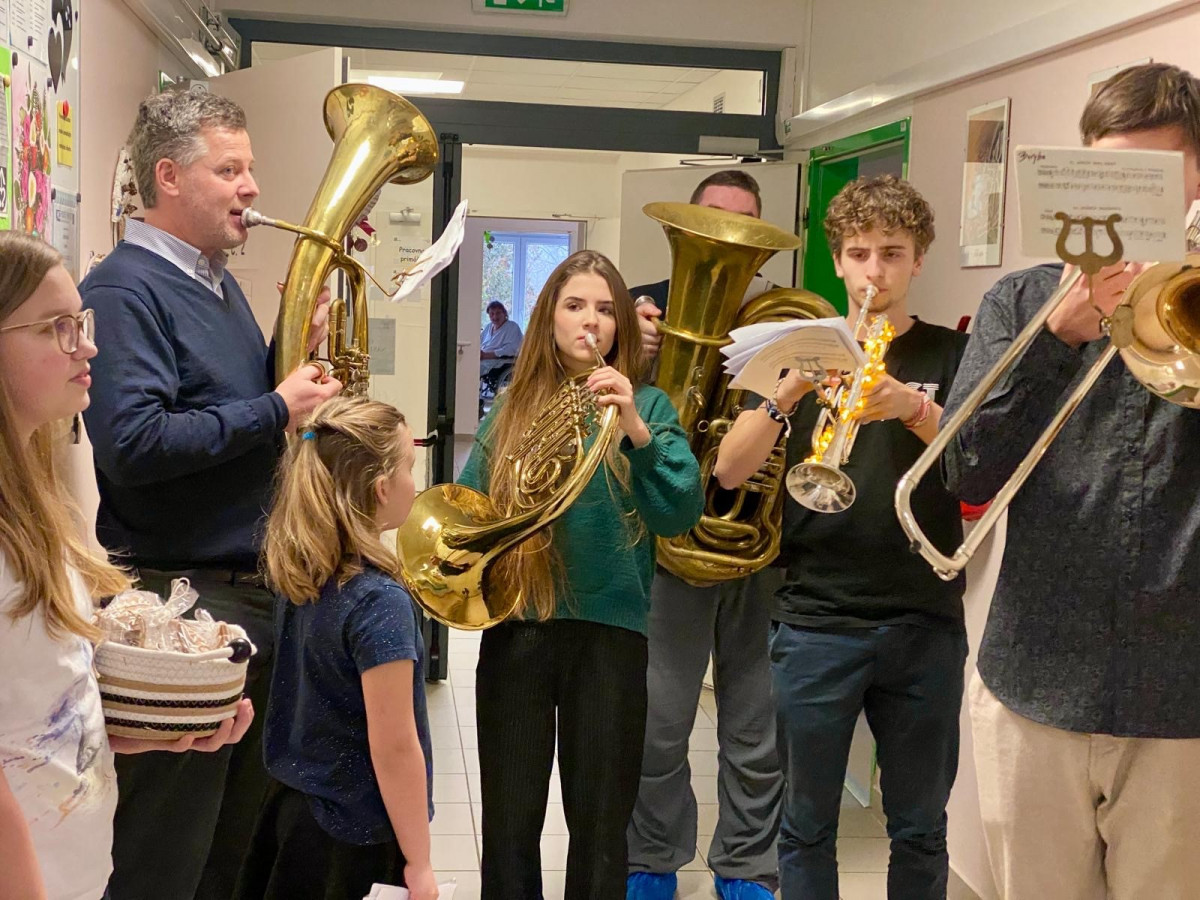 Vyvrcholením projektu byla návštěva oddělení ONP, kam děti přišly v doprovodu dechové kapely. Ta zahrála tradiční vánoční koledy, které rozzářily tváře pacientů i personálu. Děti rozdávaly své vlastnoručně vyrobené dárky a přinesly s sebou radost, úsměv a vánoční náladu. Atmosféra byla dojemná – došlo i na slzy štěstí. Pacienti byli nesmírně vděční, že si na ně někdo vzpomněl, a děti si tento okamžik užily stejně intenzivně.